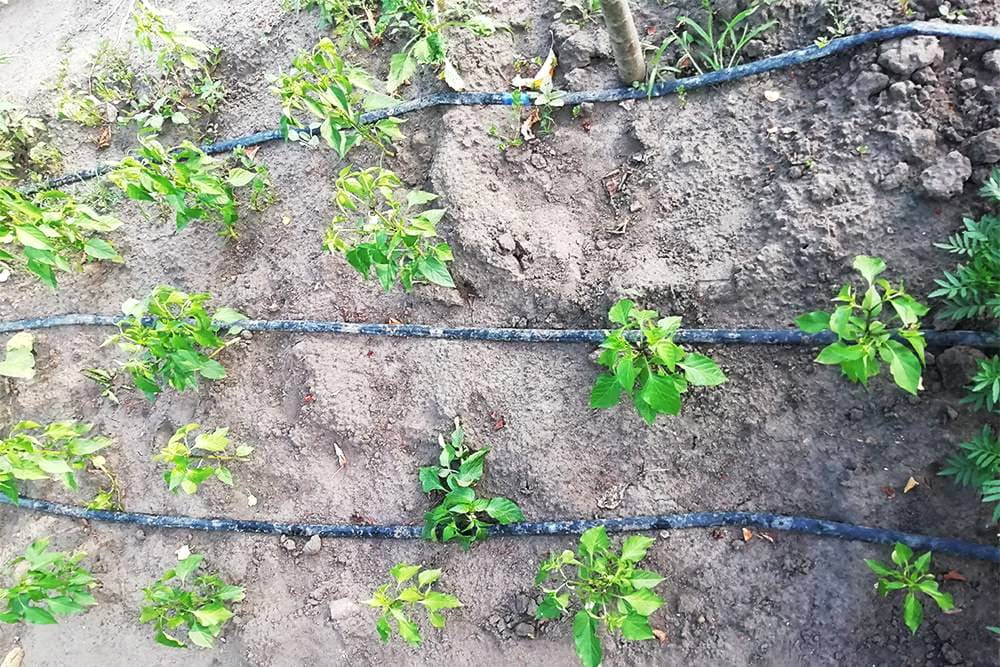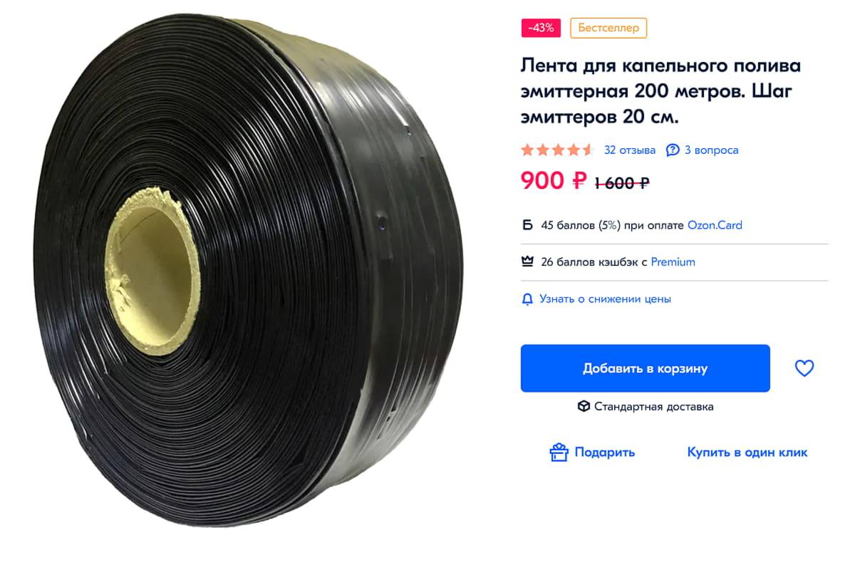 Расстояние между эмиттерами может быть разным. Для некоторых культур, которые посажены далеко друг от друга, подойдет лента с расстоянием 30 см. Я выбрала ленту с частым расположением эмиттеров — каждые 20 см.