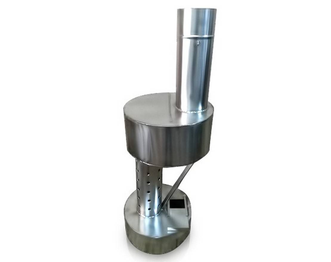 Главное отличие такой конструкции от стандартной буржуйки — она состоит из 2 камер. Их между собой соединяют металлической трубой с отверстиями: из них как раз и выходит пламя.