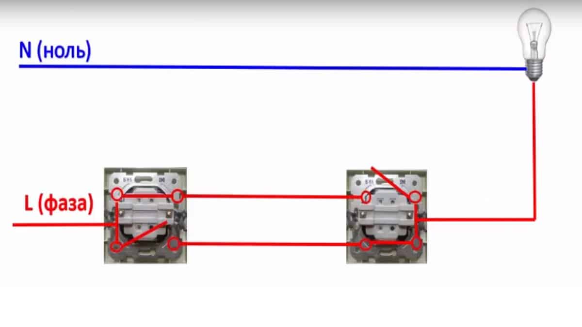 Схема подключения проходного выключателя