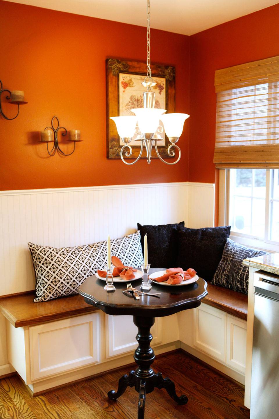 Если в планировке кухни есть небольшая ниша, ее можно превратить в уютную обеденную зону.