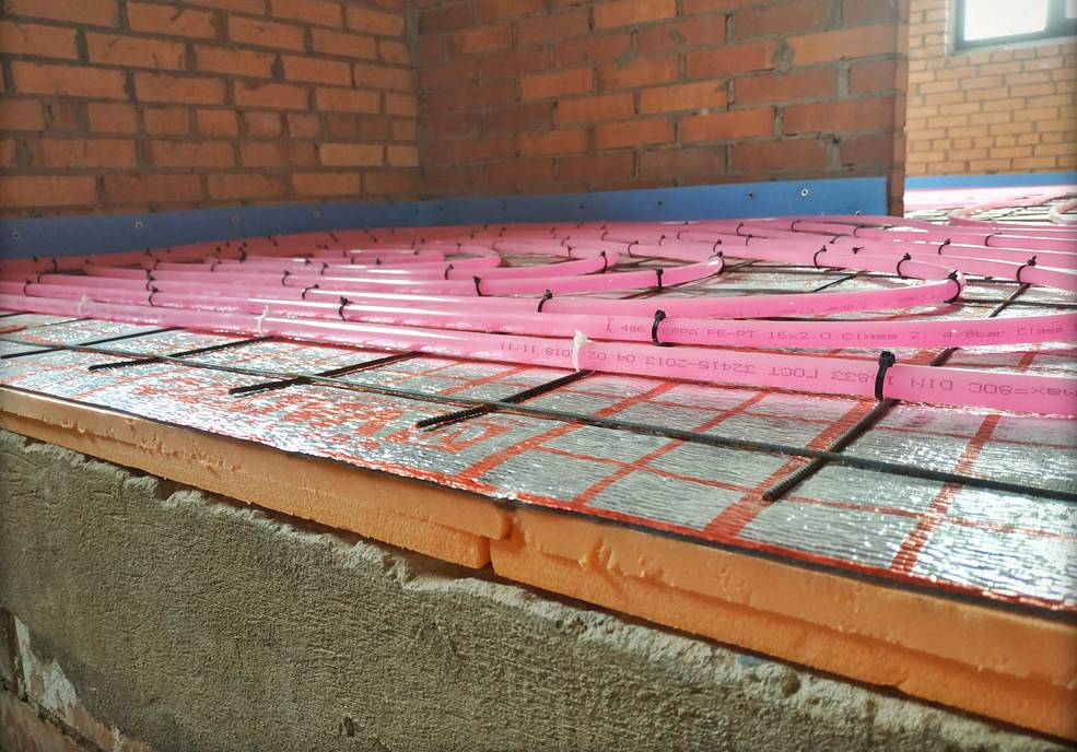 Кроме того, часто устанавливаются металлопластиковые трубы — цена не дорогая и они не сложны в монтаже. Есть медные трубопрокатные изделия, которые дороже по стоимости, и требуют защиту при заливке бетонного раствора от щелочного воздействия.
