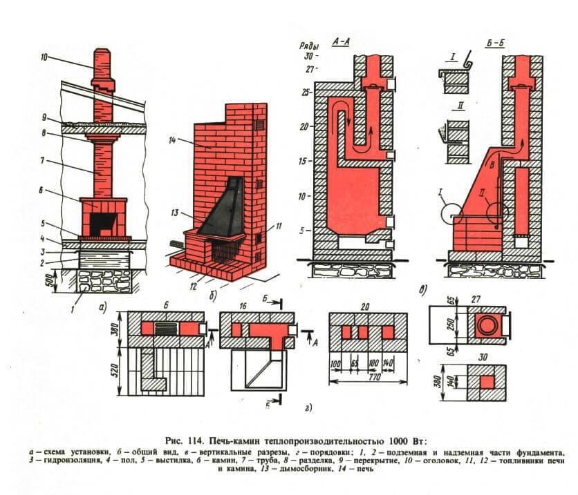 Чертежи кирпичных печей для дома любого типа выглядят следующим образом: