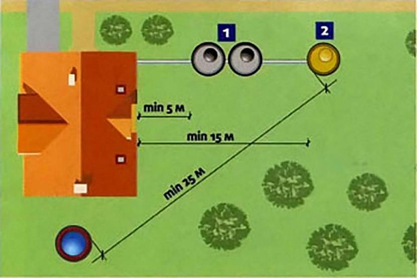 Существует множество требований по расстоянию от канализационных колодцев и септиков до других объектов