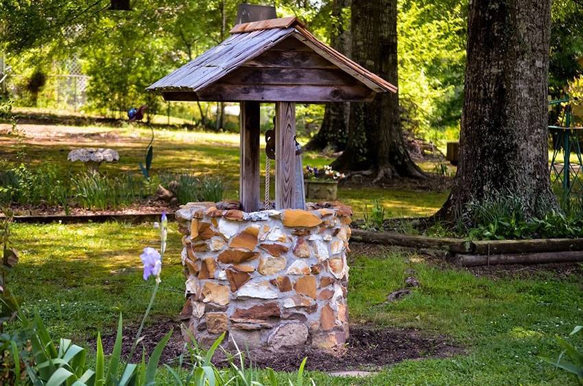 Если уделить внимание эстетической стороне вопроса, тогда колодец можно сделать привлекательным декоративным элементом, который преобразит дачный участок. Над колодцем можно соорудить домик.