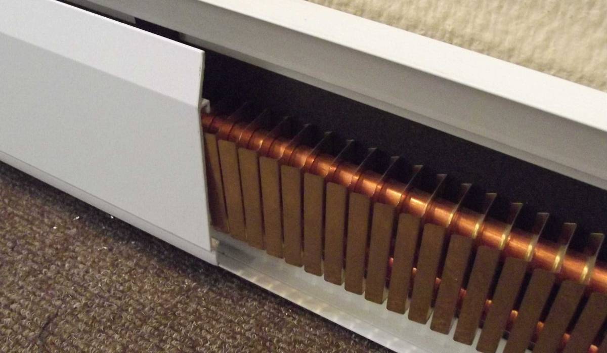 Имеет теплый плинтус и явный недостаток — высокую цену. Связано это с тем, что для увеличения теплоотдачи используется медь и алюминий, а стоят они немало.