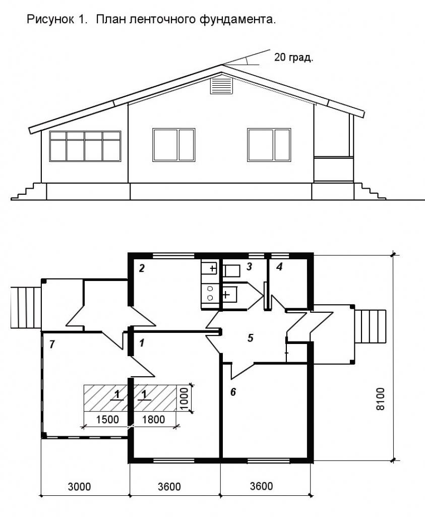 Следует привести пример расчета мелкозаглубленных фундаментов на пучинистых грунтах. Например, строится одноэтажный дом с такими размерами:
