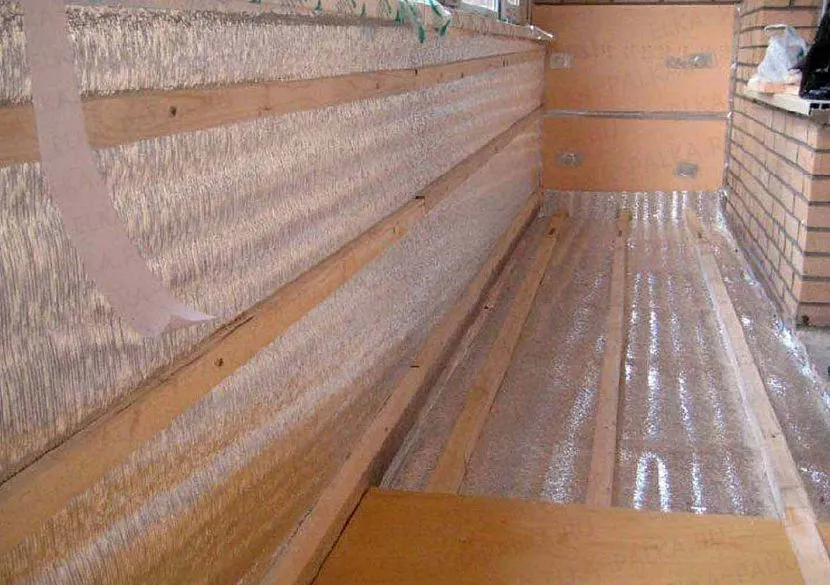 Теплоизоляционный слой вспененным полиэтиленом на балконеИсточник samsebemaster.net