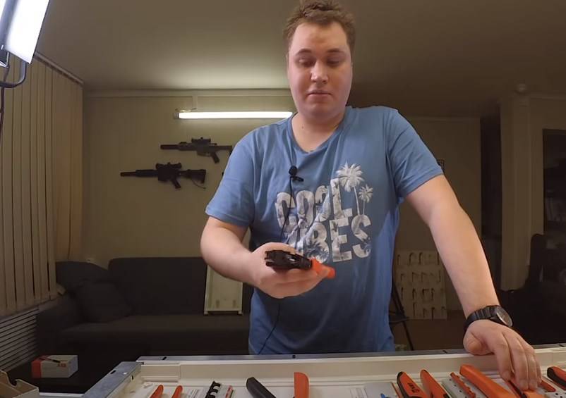 Несмотря на практичность и функциональность пресс-клещей, есть места, где использовать такой инструмент очень неудобно. Профессионалы ремонтно-монтажного дела говорят, что при работе со штробами, прокладываемыми в фальш-стене или под подвесным потолком, разумнее взять не клещи, а пресс-пистолет. Он полностью исключает получение травм и дает возможность управлять процессом одной рукой.