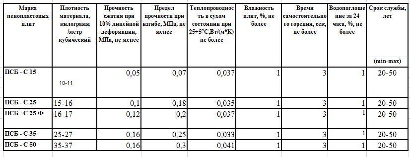 Основной характеристикой при выборе утеплительных строительных материалов для фасада дома и крыши выступает плотность пенополистирола, ее числовое выражение указанно в марке. Минимальным показателем обладает ПСБ-15, а для проведения наружных работ рекомендованы ПСБ-С-15, ПСБ-С-25, ПСБ-С-35.