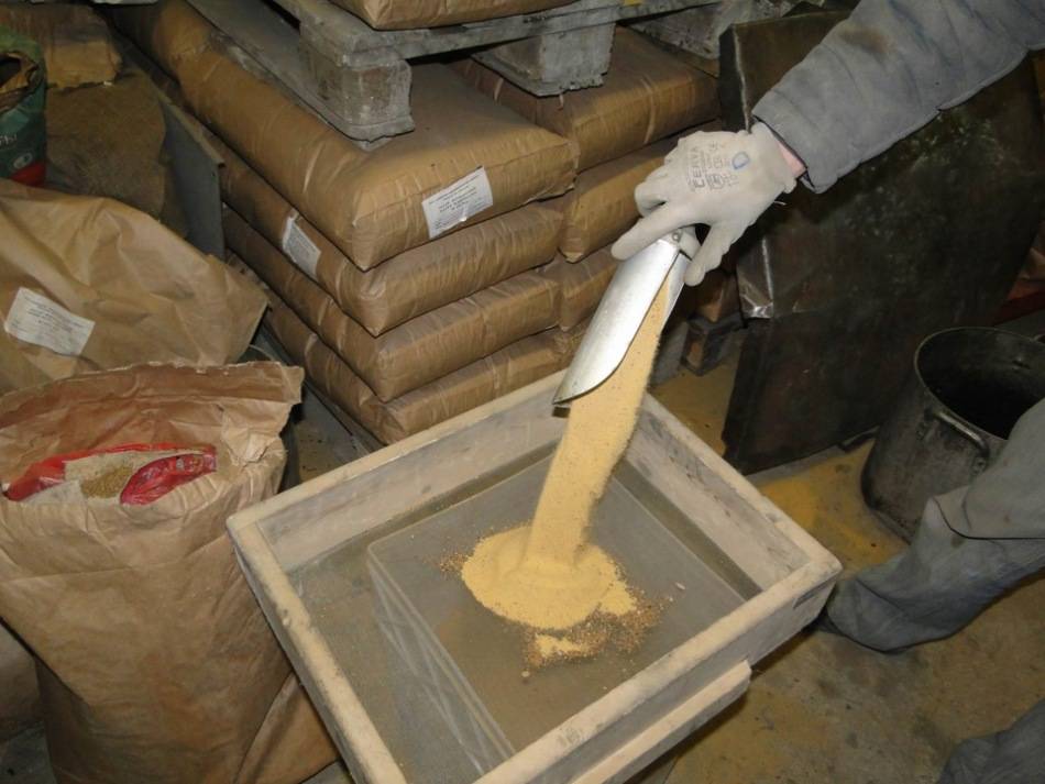 Для приготовления раствора используется карьерный или речной песок мелкой фракции без дополнительных примесей. Перед использованием его обязательно просеивают через мелкоячеистое сито. Если в нем имеются примеси гравия, тогда рекомендуется использовать сито с размером ячеек до 10 мм. Для мелкофракционного материала подойдет сито с 2 мм ячейками.
