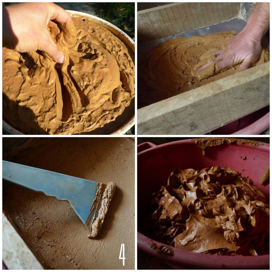 Нужный объем глины замачивается на 24 часа, добавляется вода для получения густой массы. Полученный материал аккуратно процеживается, затем в него добавляется песок и еще раз замешивается