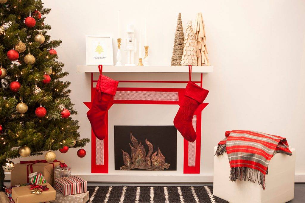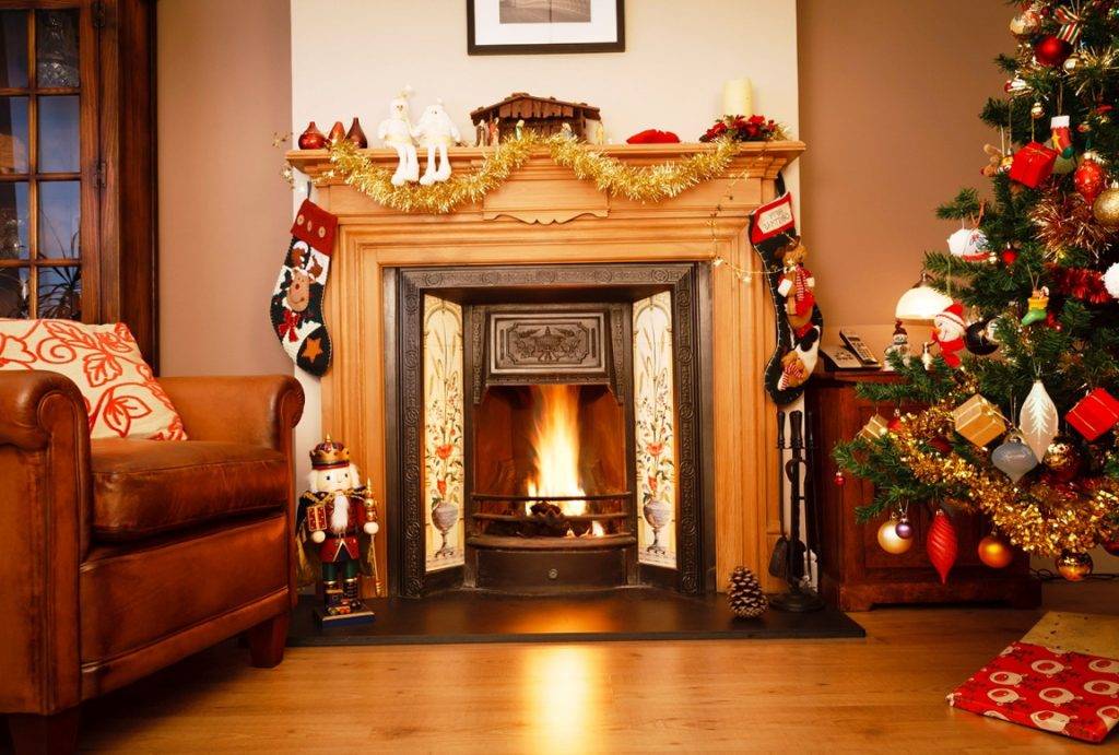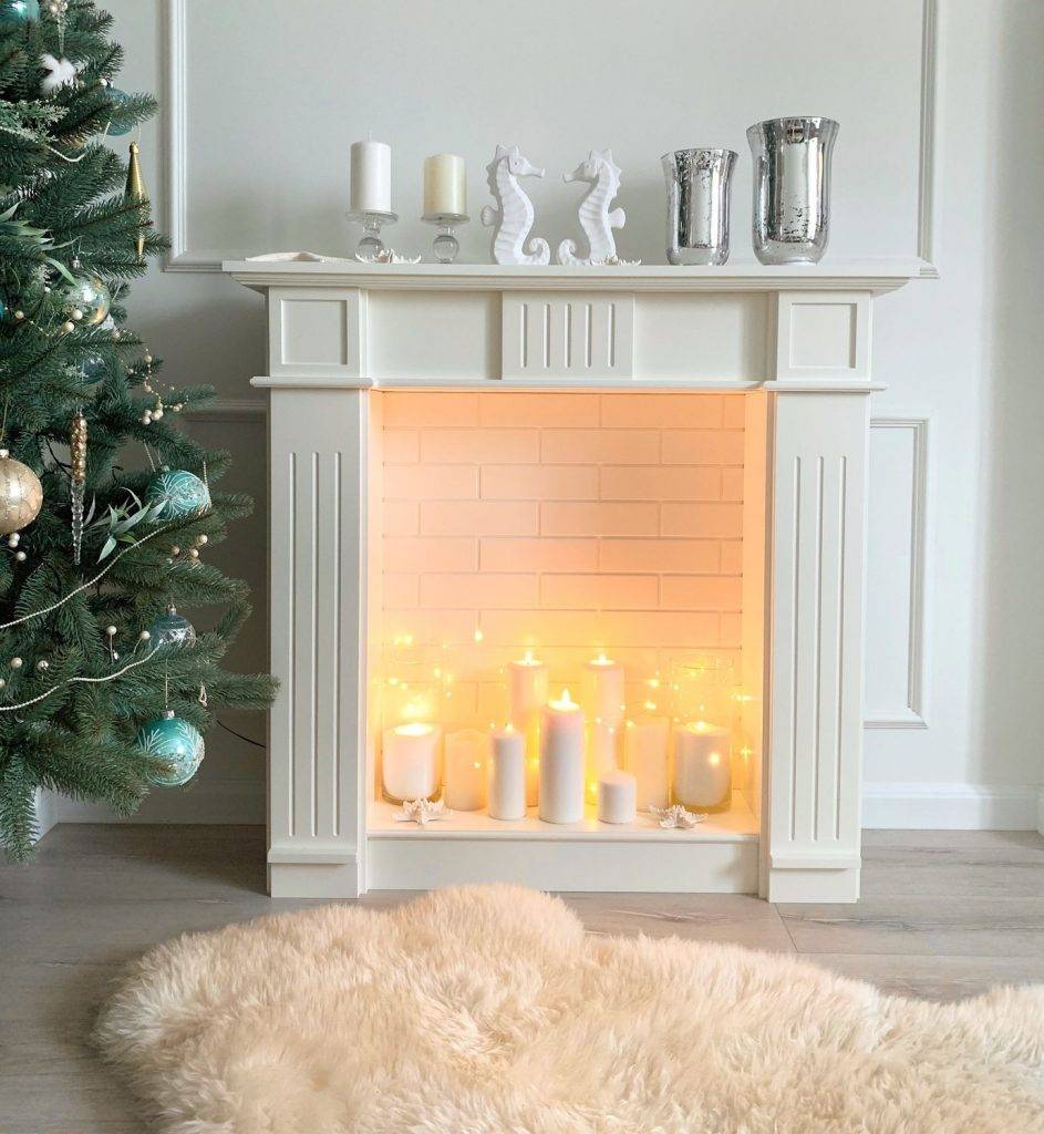 Лучшим украшением комнаты с камином будет пламя огня и потрескивающие поленья, создающие волшебную атмосферу. Такой вариант подходит для настоящих конструкций. Можно имитировать огонь – оптимальный способ выбирается в зависимости от сложности работы, материала изготовления фальш – камина и планов на праздник: