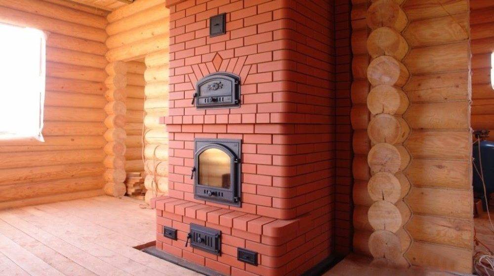 Для большей отдачи тепла топку выкладывают без огнеупорного кирпича. Керамический нагревается быстрее, расходуя температуру массива.