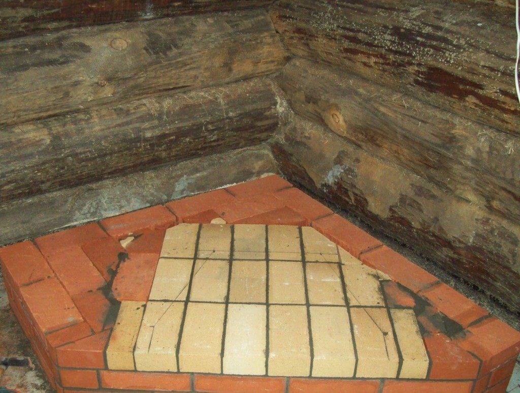 Также нужно защитить пол перед очагом от возможного возгорания от золы. С этой целью настилают огнеупорное покрытие.