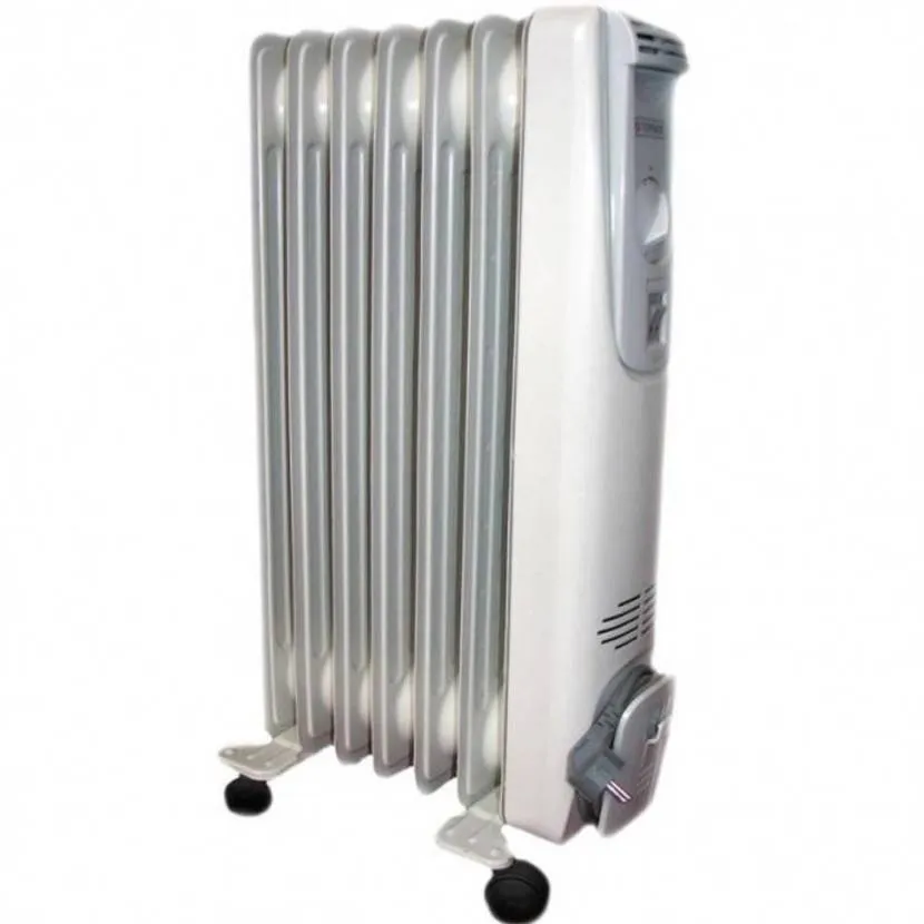 Масляный радиатор представляет собой вертикальную ребристую емкость, заполненную минеральным маслом, в которой установлен нагревающий элемент (ТЭН). Для включения и отключения, регулирования мощности и безопасности работы, в зависимости от модели, он может снабжаться включателями разного типа, встроенным реостатом, датчиками перегрева и опрокидывания. Некоторые модели имеют в своей конструкции вентилятор, обеспечивающий более быстрый нагрев помещения.