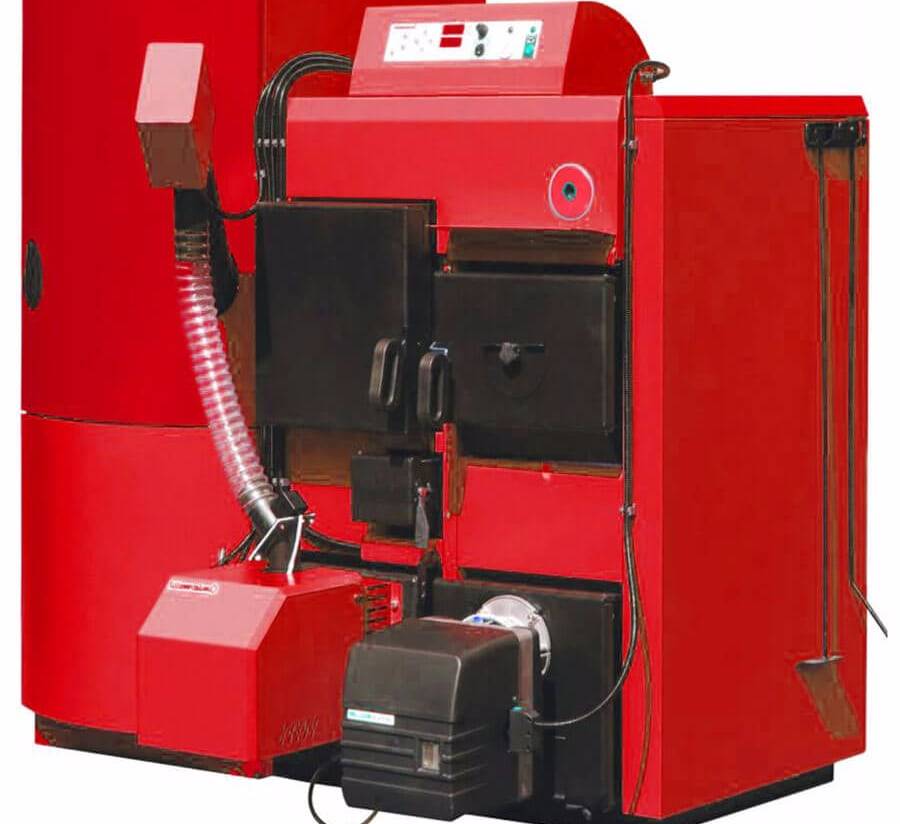 Газогенераторные модели имеют 2 камеры сгорания: для твердого топлива и выделяемого на первом этапе горючего газа. Такое исполнение обеспечивает экологичность, энергоэффективность установки, повышает ее КПД до 95%. Можно использовать топливо любой фракции при условии контроля его влажности.
