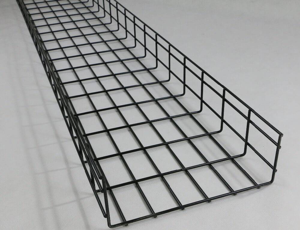 Для эксплуатации в особо тяжелых условиях, кабельный лоток изготавливается из листовой нержавеющей стали. В лотки из этого материала, обладающего высокими гигиеническими качествами, укладывается кабель на предприятиях пищевой промышленности. Существенно облегчить конструкцию кабельной системы, сохранив при этом достаточную механическую прочность, позволяет применение лотков из проволоки, один из которых изображен на фото ниже: