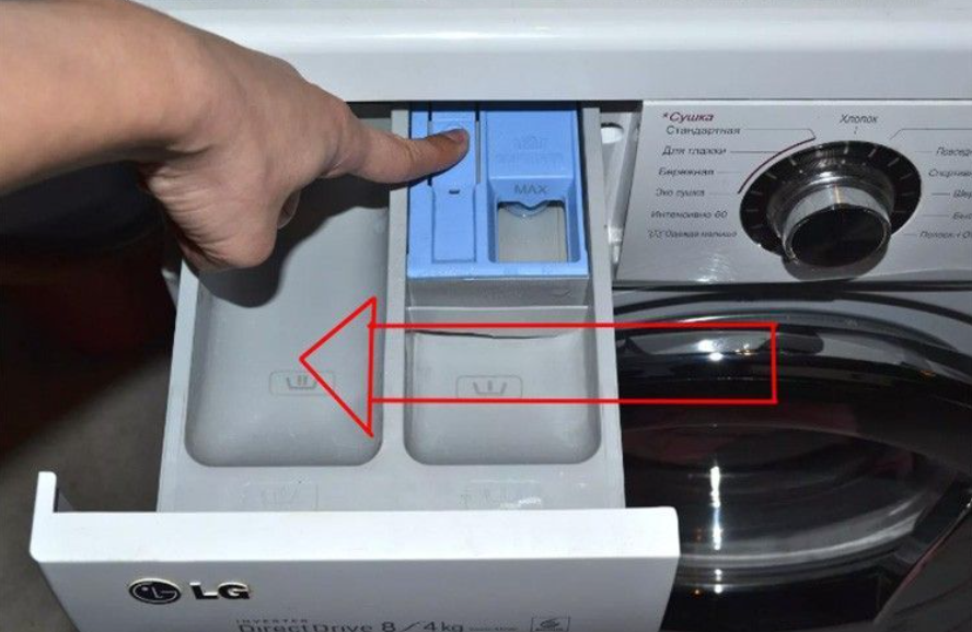 Для регулировки количества смягчающего вещества на отделение для кондиционера часто наносится ограничивающая полоска с надписью max, обозначающая предельную границу.
