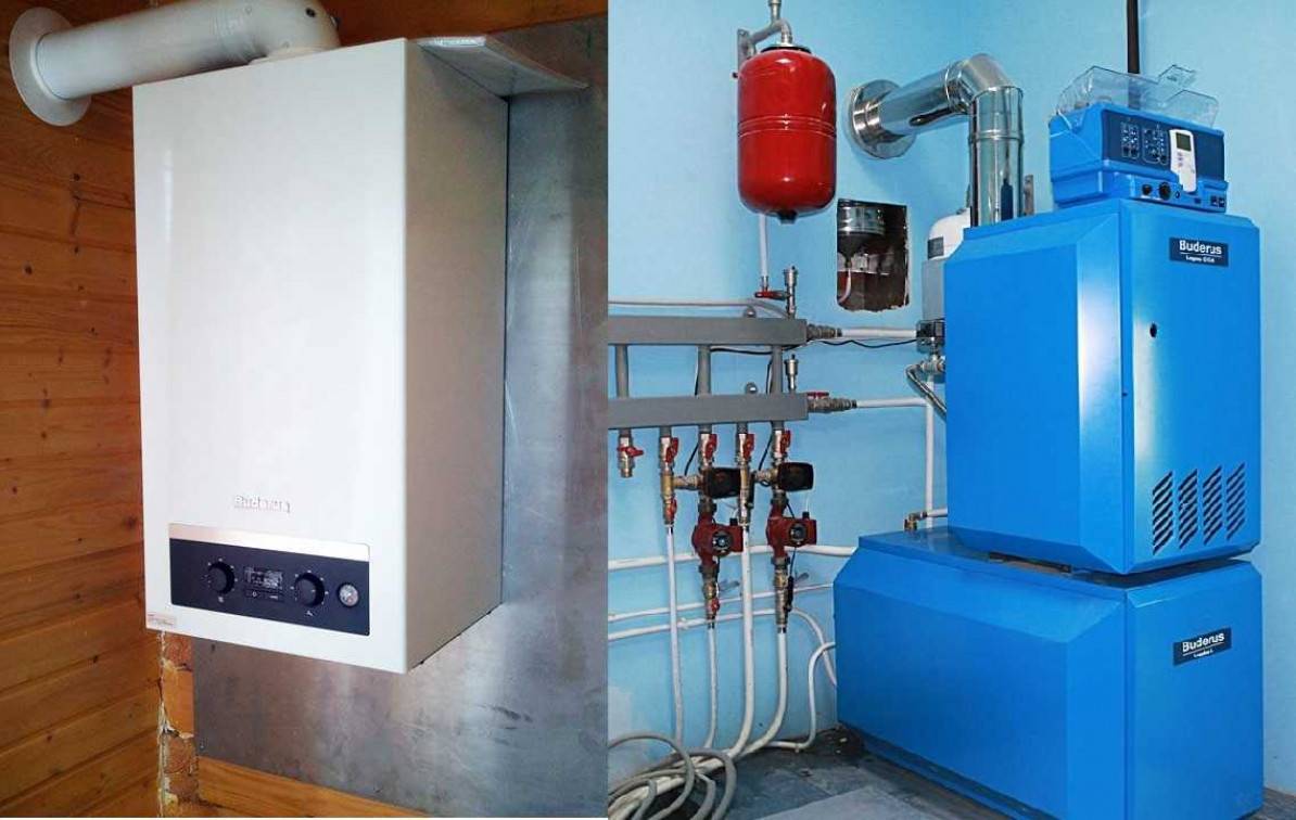 Есть атмосферные котлы и надувные. Атмосферные работают очень шумно, но стоимость низкая. Горелка уже в составе аппарата. Надувные котлы конечно из-за наличия вентилятора очень шумно работают. Еще и зависят от электроснабжения. Стоимость высокая, но это соответственно комплектации.