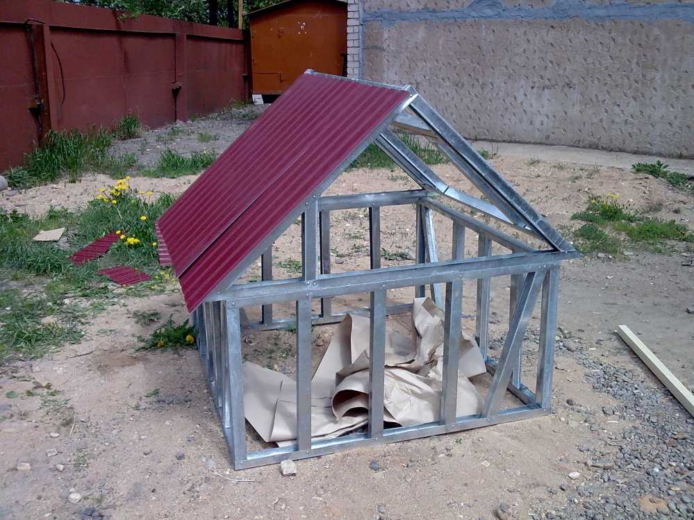 По этой же схеме можно сделать крышу для домика из металла. Если есть сварочный аппарат, использовать можно профильную трубу. К ней площе крепить отделочный материал.
