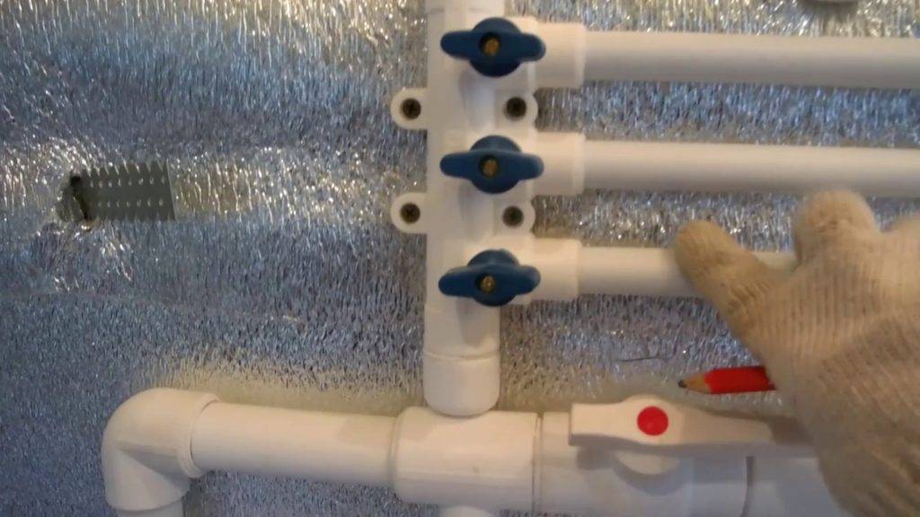 До момента проведения проверки на подобранное место устанавливается коллекторный шкаф, подсоединяются греющие трубы, по которым буде передвигаться вода.