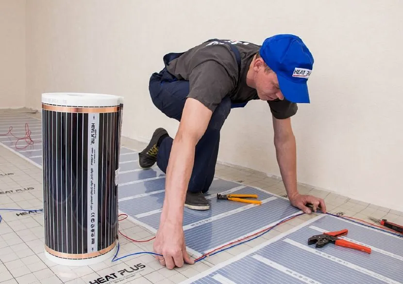 Отопительную систему пленочного типа используют для всех финишных половых покрытий. Монтаж проводится на черновую основу. Стяжку после укладки не требуется. Облицовочный материал укладывается сразу на пленку.