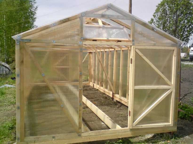 Если строится теплица из поликарбоната своими руками на деревянном каркасе, все доски/брус надо обработать/пропитать антисептиками, причем такими, которые предназначены для улицы. Концы, которые закапываются в землю, обработать составами для непосредственного контакта с землей. Без такой обработки древесина во-первых, будет быстро разрушатся, во-вторых, может стать источником болезней растений.