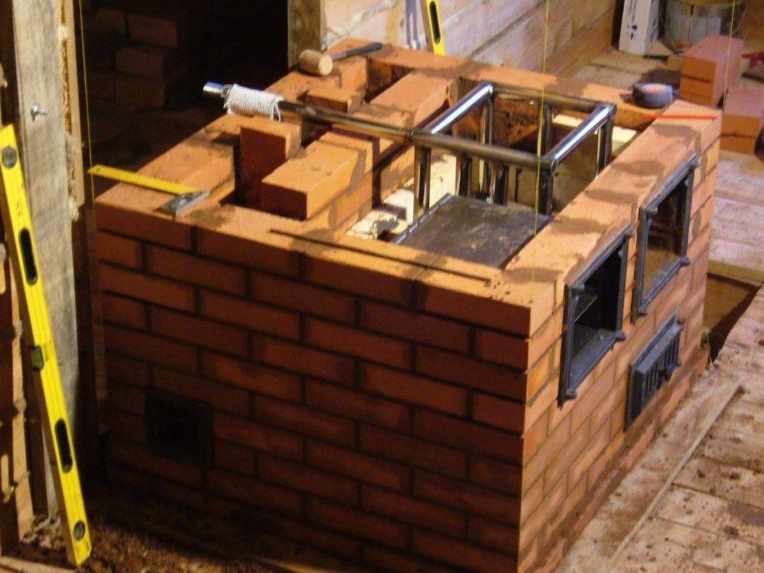 - устройство устанавливается сразу же после возведения основания под печь. Только затем выполняется ее кладка;