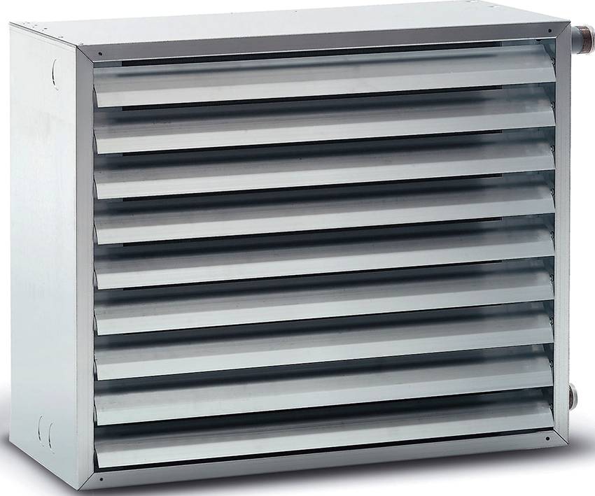 Воздушно — отопительные агрегаты с водяным теплообменником, как несложно догадаться по их названию, используют переносимое водой тепло для быстрого нагрева воздуха в помещении. Теплообменник — трубы, опять-таки с оребрением, через которые циркулирует теплоноситель. Обдув ускоряет обмен теплом с окружающим воздухом.