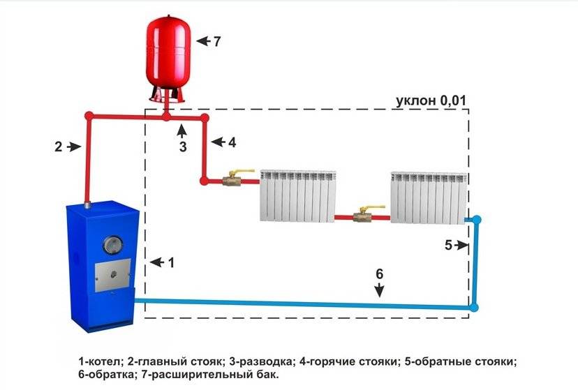 На схеме важно учитывать размещение котла, площадь комнаты и условия для установки системы. Также учитывают количество труб