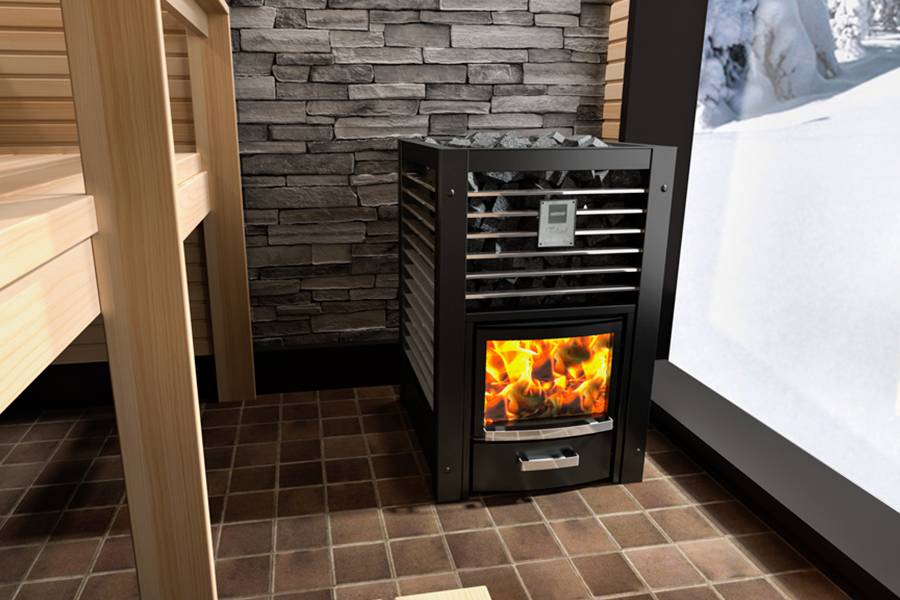Более удобно, если дверца расположена снаружи, предполагая туннель для закладки дров. Это обеспечит быстрый доступ к дровам, и не требуют наличие дров в парной. Но печи Harvia чаще всего имеют небольшую дверцу для закладки в нижней части печи.
