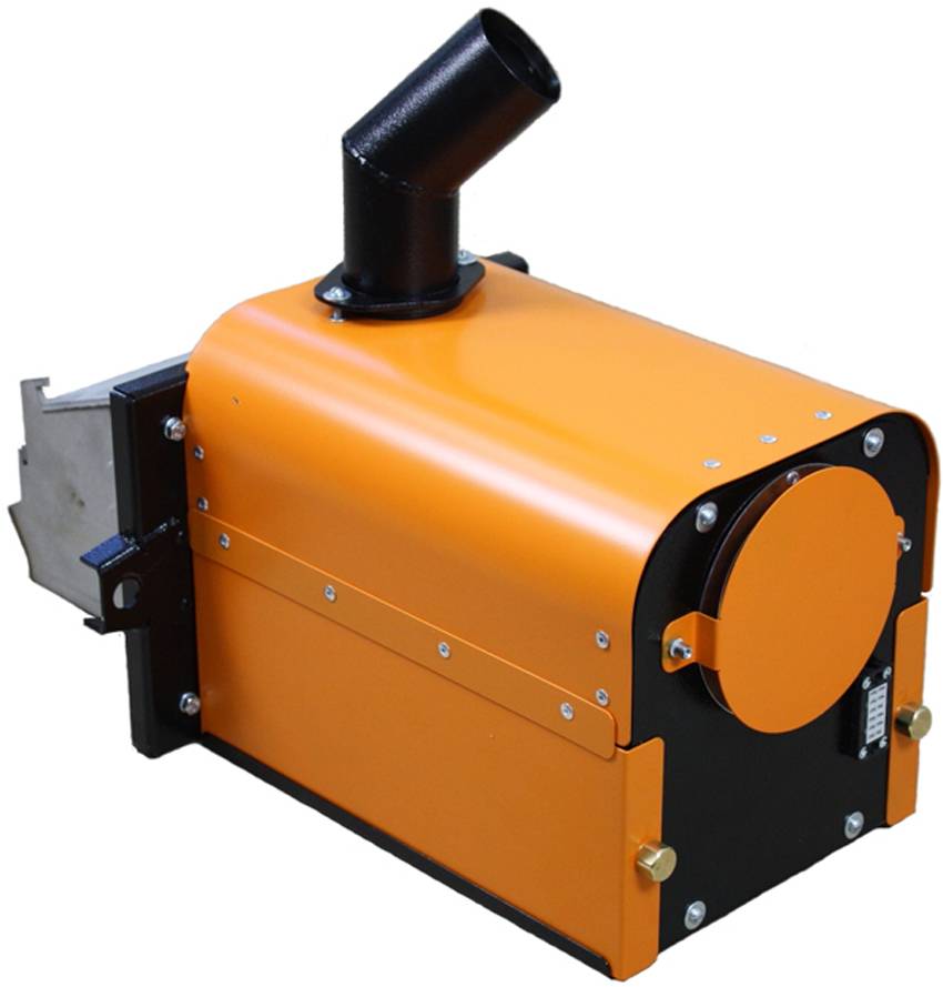 Получить больше тепла и автоматизировать процесс можно, установив на котел специальное горелочное устройство. Последние имеются в продаже, но они приспособлены для работы на пеллетах.