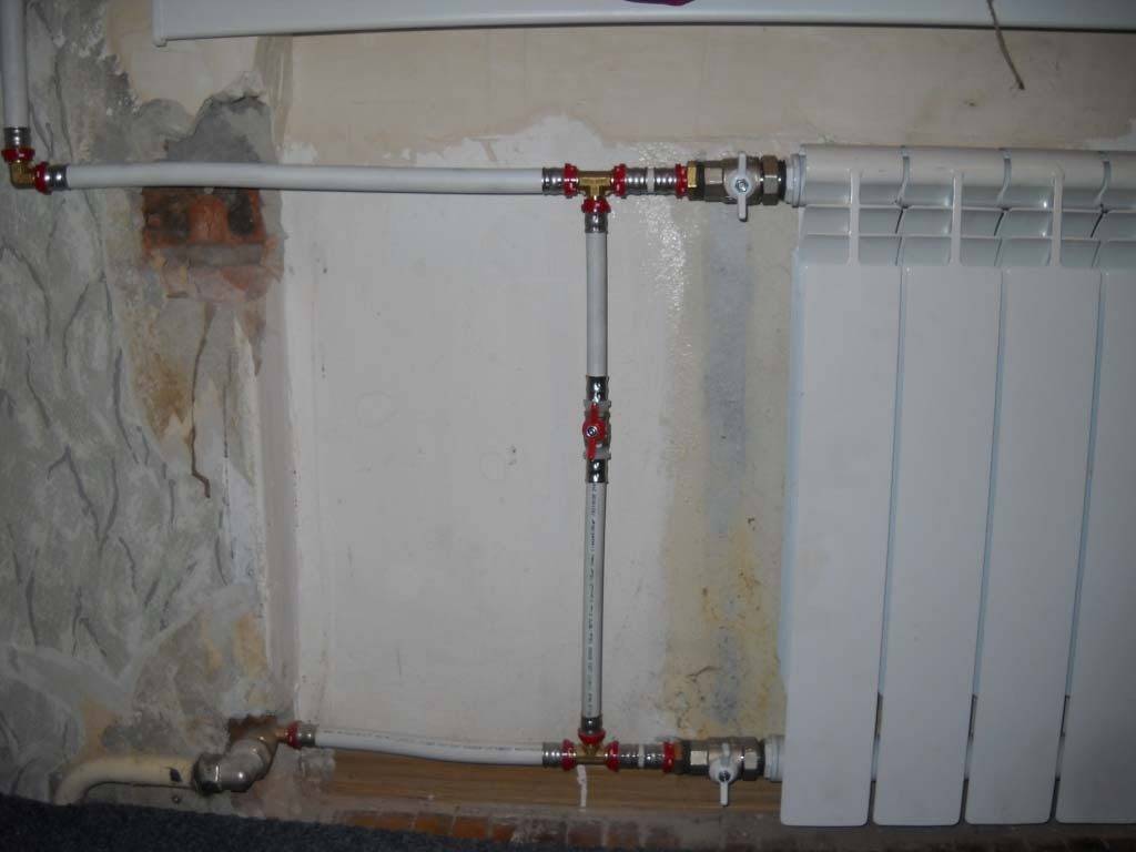 - Вариант с неправильным монтажом труб отопления в других помещениях, на кухне, из-за чего вода не попадает в батарею, а проходит мимо.