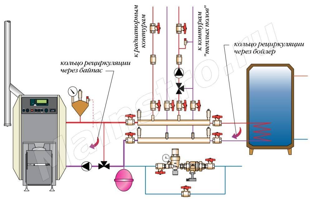 Во-первых, обязательно наличие циркуляционных насосов (Н) для каждого контура. Но этого мало.