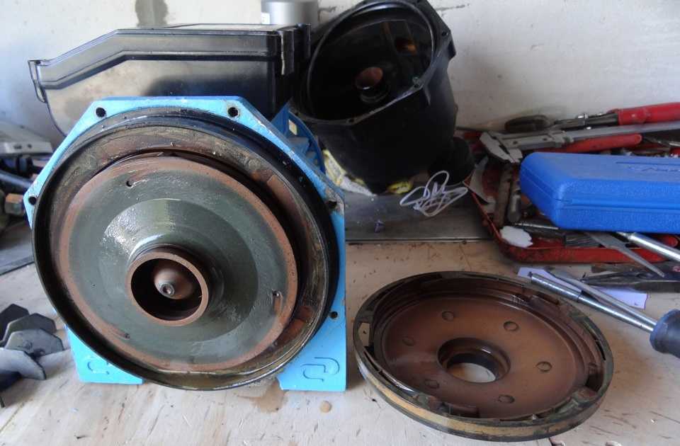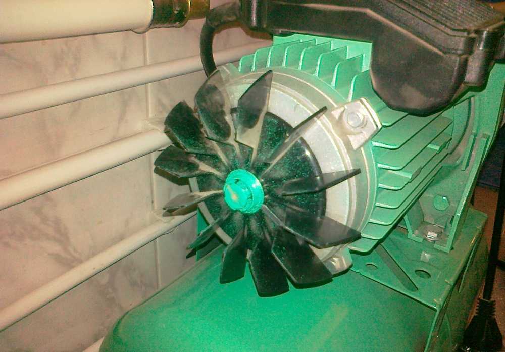 Если не помогло, может заклинила крыльчатка. Тогда попробуйте вручную провернуть вал. Иногда после длительного простоя он «прикипает» — зарастает солями и сам сдвинуться не может. Если руками сдвинуть лопасти не получилось, возможно крыльчатку заклинило. Тогда ремонт насосной станции продолжаем тем, что снимаем защитный кожух и разблокируем крыльчатку.