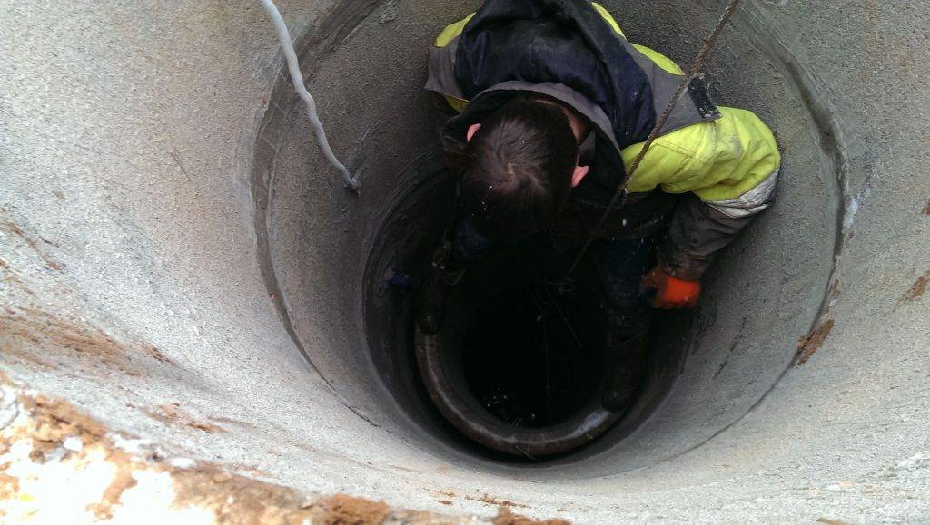 - Чтобы обеспечить полную безопасность в процессе очистки, необходимо использовать страховочный канат или трос независимо от глубины сооружения.