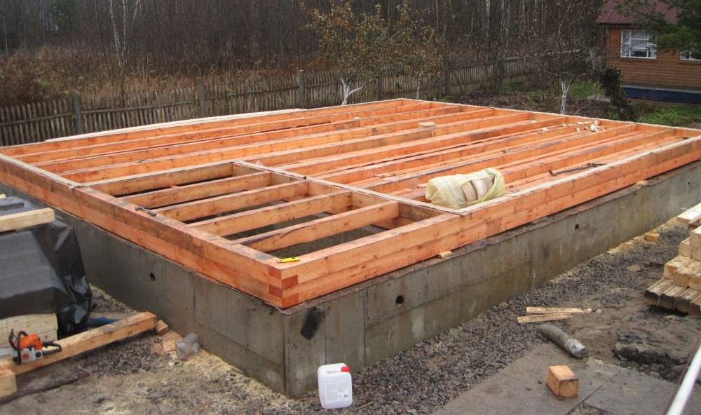 После того как установлены опорные брусы и лаги, можно приступать непосредственно к организации пола в каркасной бане