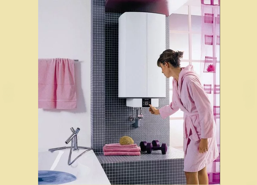 - Далее требуется освободить бак от воды. Необходимо подождать, пока содержимое бака остынет. Отдельные модели требуется снять со стены. При этом необходимо отсоединить шланги подачи горячей и холодной жидкости.