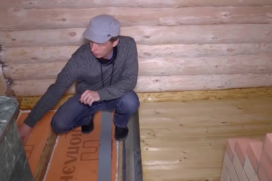 Пароизоляция. Во время открывания дверей в парилку пар начинает попадать в предбанник, воздействуя таким образом на материалы напольной конструкции. Если будет обустроена пароизоляция, то включается слой, который является непроницаемым для пара. В качестве данной защиты в большинстве случаев используются пленки с алюминиевой фольгой. В качестве основы пленки может выступать ПВХ, полиэтилен, а также полипропилен. В принципе, можно использовать и мембранные материалы, которые обеспечивают хорошую паровую непроницаемость.