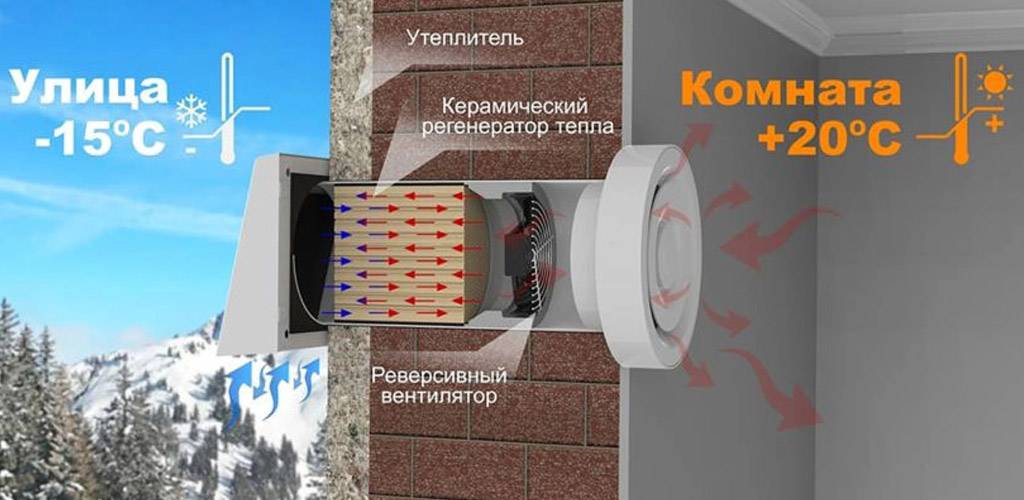 Во время этого процесса излишки углекислого газа выдавливаются. Происходит это из-за разницы давления, так как поступает холодный воздух, а вымещается теплый (рекомендуемое значение температуры – не более 5 градусов по Цельсию). Если нарушить показатель, никакой разницы не возникнет, а прибор будет неэффективен. Поэтому если человек живет в теплых областях, то нужда в этом приборе отпадает, так как легче проветривать помещения вручную. Потеря тепла будет, но не такая критичная, как в холодное время.