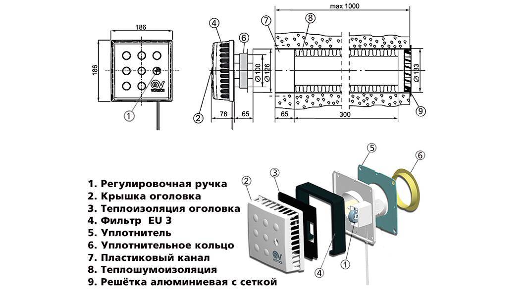 Приточный клапан в стену представлен к продаже в нескольких моделях, однако каждая из них имеет общие особенности и составляющие, среди них: