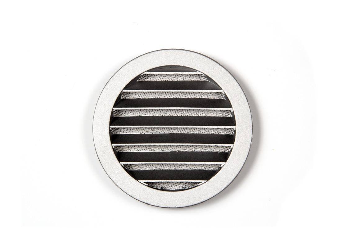 Наружная алюминиевая решетка КИВ КВАДРО необходима для защиты от попадания насекомых, тополиного пуха, листвы и пр. А также предотвращает попадание осадков (дождя и снега) и птиц. На внутренней стороне решетки расположена антимоскитная сетка, на наружной стороне расположены наклонные жалюзи, предотвращающими попадание атмосферных осадков внутрь трубы приточного клапана.