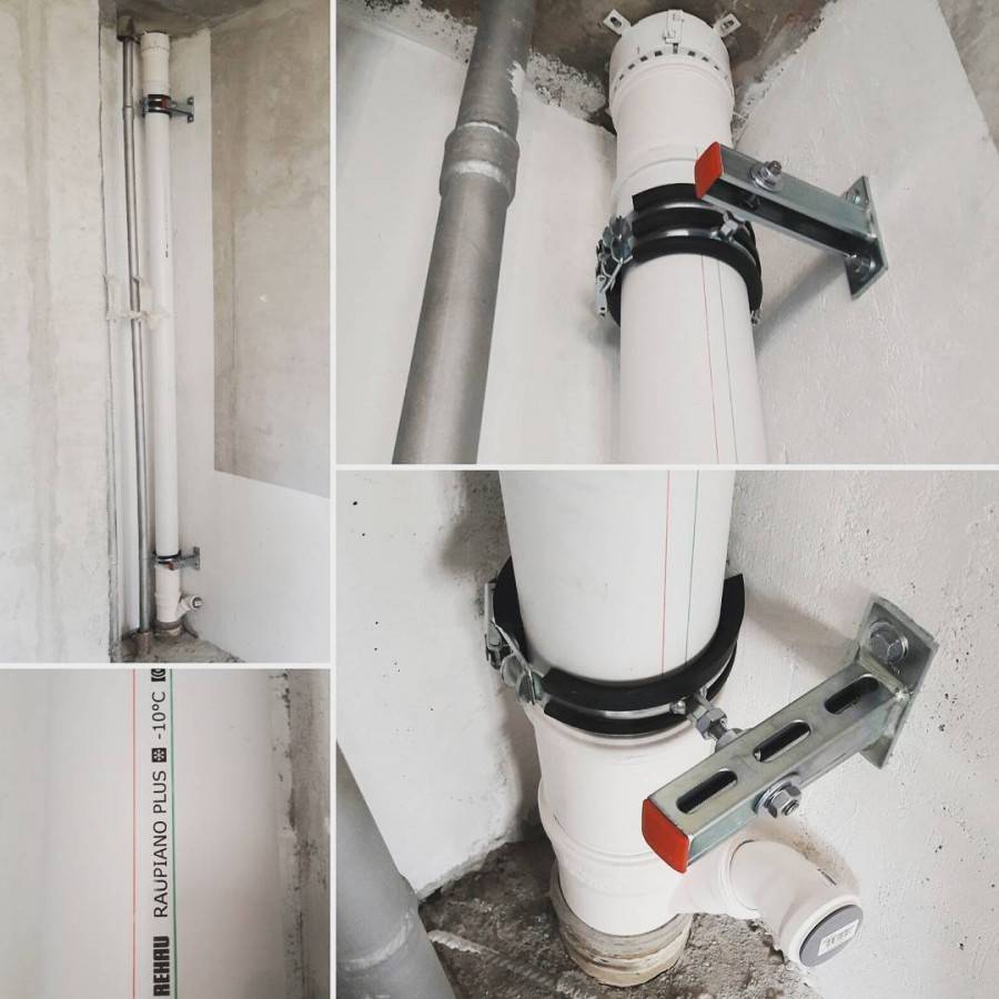 Алгоритм крепления канализационных труб к стене с помощью вышеупомянутых крепежей: