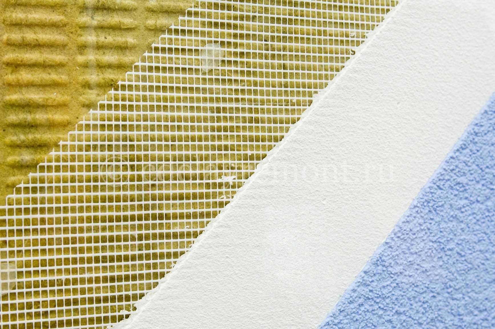 Армирующая сетка фиксируется на заранее нанесенный базовый слой штукатурки — она в него утапливается. Недопустимо крепить сетку к утеплителю и на нее наносить раствор штукатурки.