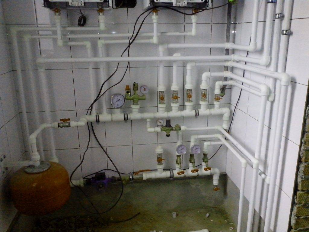 После того как будет смонтирован редуктор, необходимо последовательно подвести трубы к каждой сантехнической точки от единой центральной магистрали.