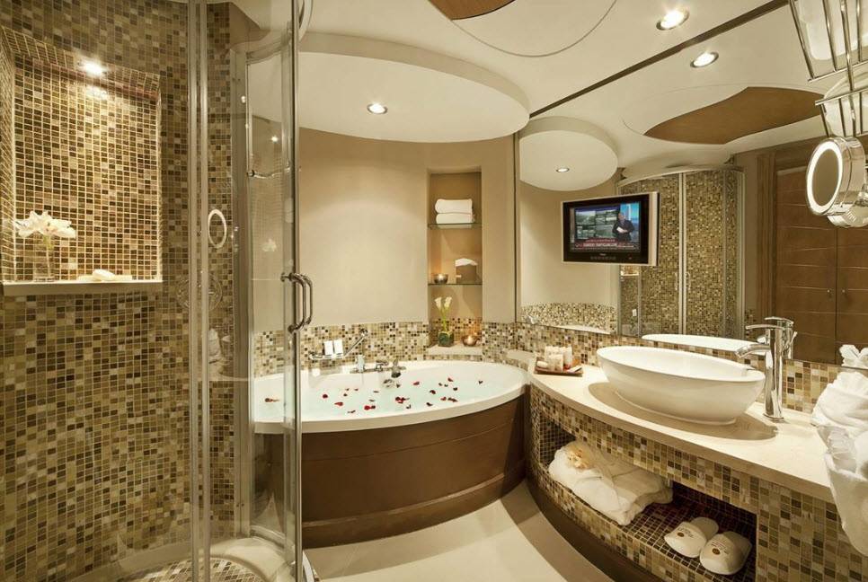 Плитку используют для оформления интерьера ванной в любом стиле. Огромное разнообразие цветовых решений, форм, размеров, текстуры материала позволяют воплотить в жизнь самые смелые мечты. Рассмотрим интересные интерьеры ванных комнат, отделанных плиткой, в современном стиле.