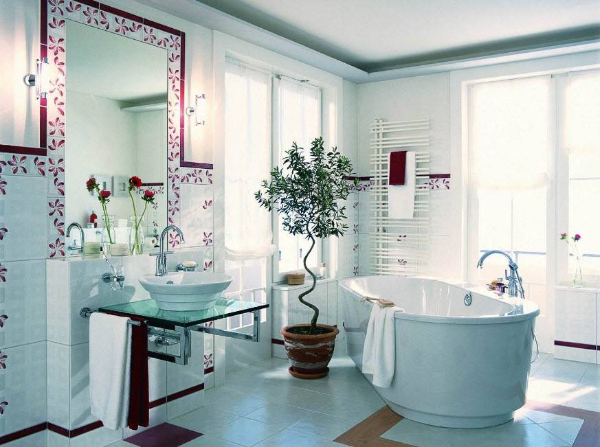 Важно добавить индивидуальных акцентов, чтобы в гостях у друзей не обнаружить точно такое же оформление. В принципе производители предлагают в коллекциях множество элементов, которые придадут ванной комнате индивидуальности – это и тематические панно, разнообразный фриз и другие элементы декора