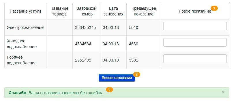 3. Подать показания по приборам учета