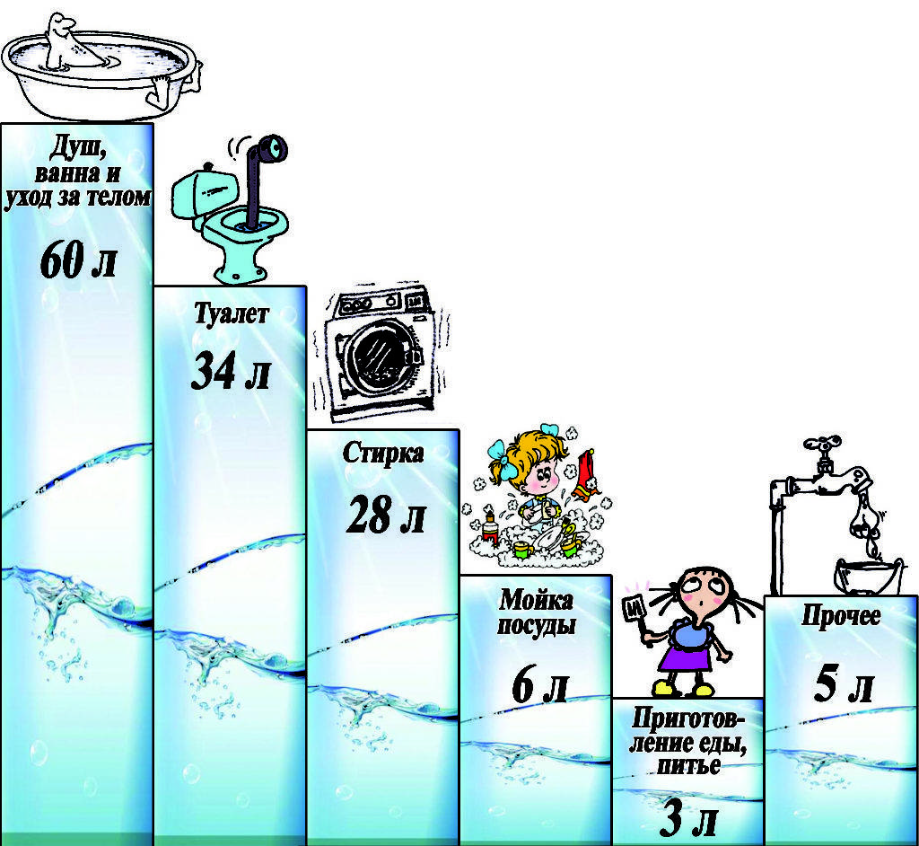 Получается, что на 2-3 дня при использовании бытовой техники надо искать накопительную емкость объемом не менее 500 литров, половина кубического метра.