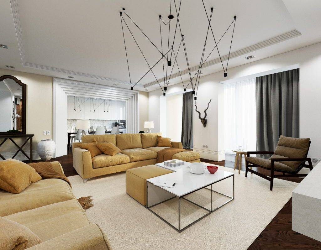 Успешно выбранная люстра, лампа для потолка – незаменимая мелочь в интерьере. Учитывая тенденции, светильники должны быть в стиле художественной инсталляции. Ниже приведем фото: